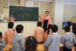 幼稚園生活最後の園長先生との朝の挨拶、日課活動も立派にできました。